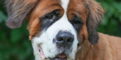 I'm a larger than life Saint Bernard with a unique trait. I have a dry mouth so I don't drool! Neat, huh?